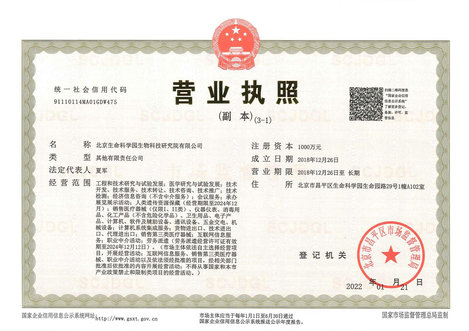 北京生命科學園生物科技研究院(以下簡稱“北京生物樣本資源庫”)(Biobank of Life Science Park,簡寫“BoLSP”)是一家由北京市科委和中關村生命科學園共同支持設立的第三方生物樣本庫公共服務平臺,秉承北京重大疾病臨床數據和樣本資源庫(以下簡稱“北京庫”)(Beijing Biobank of Clinical Resources,BBCR)十余年的發(fā)展成果,聚合眾多臨床樣本專家的專業共識,致力于在生命科學、生物醫藥研究領域發(fā)揮銜接樣本資源持有者與研究者的橋梁作用,解決生物樣本資源開發(fā)上下游信息不對稱、資源共享困難等問題。研究院在北京中關村生命科學園昌平園區建立了2000㎡生物樣本庫,最大存儲規(guī)模達1000萬份。研究院遵循CNAS-CL10:2020《生物樣本庫質量和能力認可準則》,同時結合北京庫過去十年的工作經驗與教訓,建立了一套完善的生物樣本保藏質量管理體系,從人、機、料、法、環(huán)、控多個角度,實現生物樣本保藏過程的全面質量控制,先后獲得國家科技部頒發(fā)的人類遺傳資源保藏行政許可證書和中國合格評定國家認可委員會(China National Accreditation Service for Conformity Assessment,CNAS)頒發(fā)的“CNAS認可證書”。